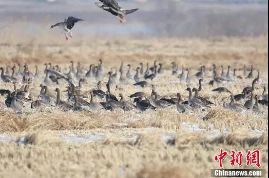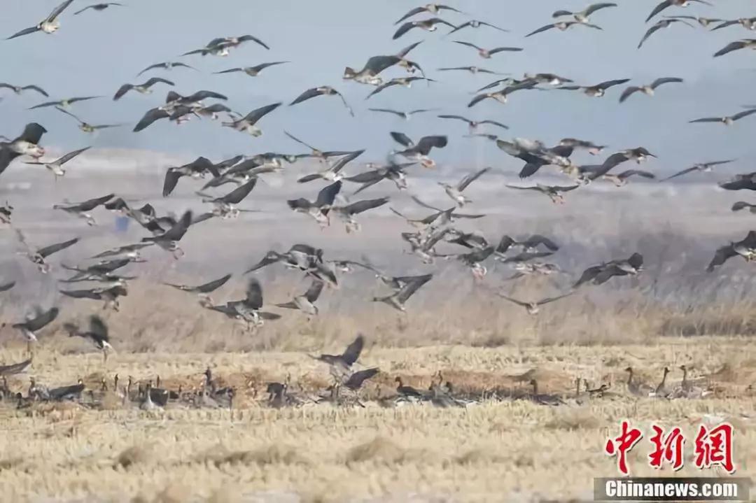 С начала октября на заболоченной территории Цзинсинь в Хуньчуне на границе Китая и России собирались стаи перелётных птиц. В основном, гуси перемещаются на юг, поэтому сейчас их можно увидеть во многих местах. Заболоченная территория Цзинсинь в Хуньчуне является первой остановкой для птиц, летящих с Сибири на юг Китая. Это место для них словно пятизвёздочный отель.