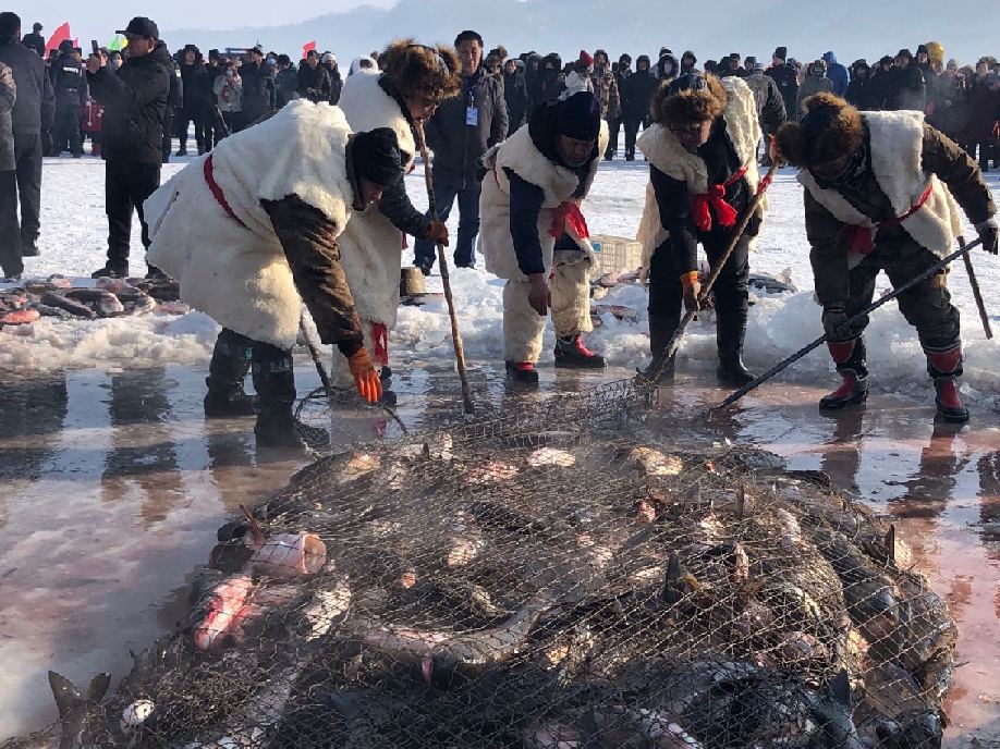 Зимняя рыбалка в уезде Люхэ провинции Цзилинь.
