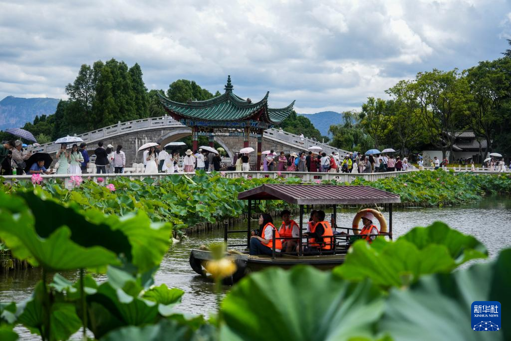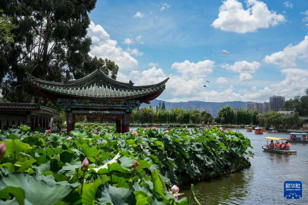 Недавно огромное количество цветов лотоса зацвели в парке Дагуань в городе Куньмин провинции Юньнань, что привлекло множество горожан и туристов. Они любуются изящными цветами и делают фотографии.