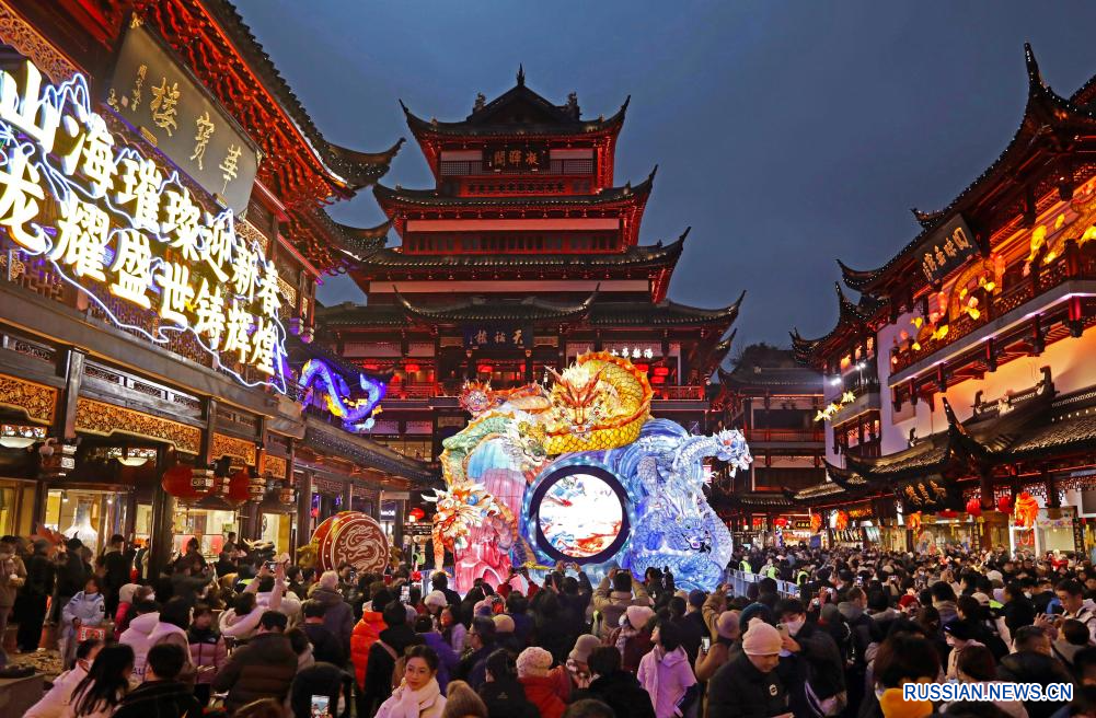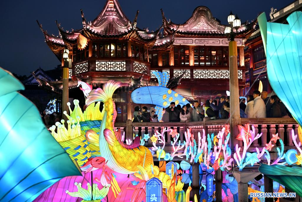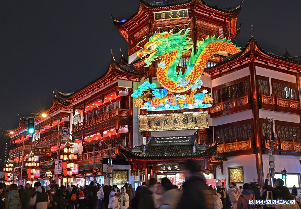 На фото от 21 января 2024 года -- в парке Юйюань в Шанхае открылся Фестиваль традиционного искусства новогодних фонарей, приуроченный к Празднику весны. (Фотографии Синьхуа/Лю Ин)