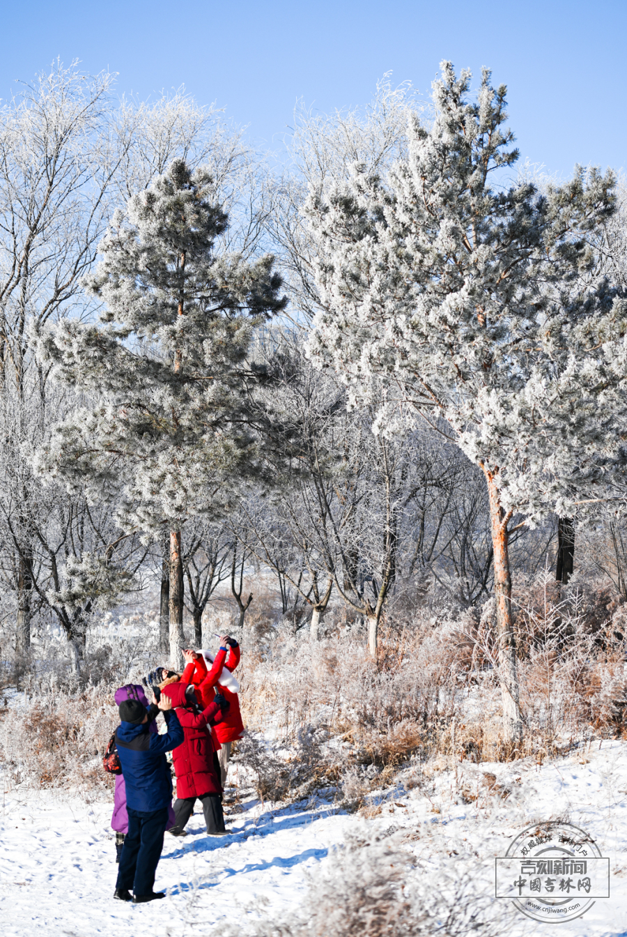 1月8日,长春市伊通河畔现绝美雾凇景观。河岸两旁玉树琼枝,晶莹闪烁,与冰河互相映托,如诗如画,吸引市民游客驻足观赏拍照。